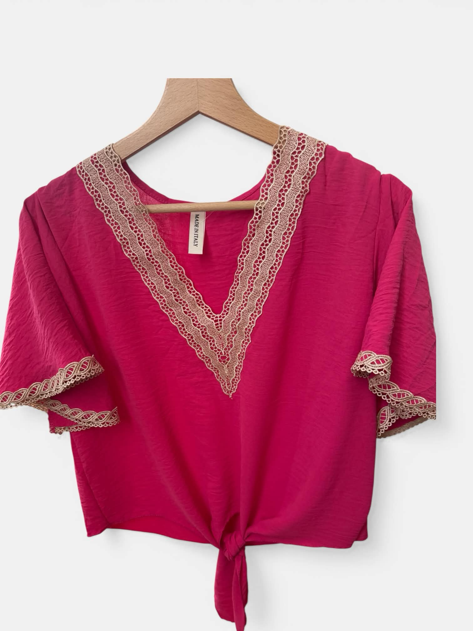 Дамска блуза в цвят фуксия с дантела